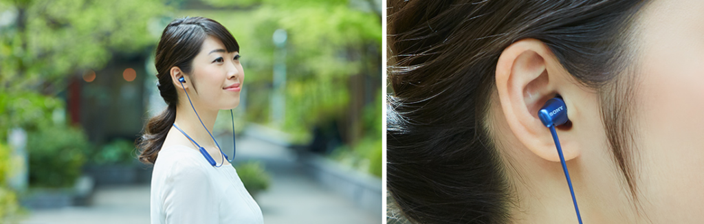 - 耳にイヤーピースをフィットさせて装着するカナル型